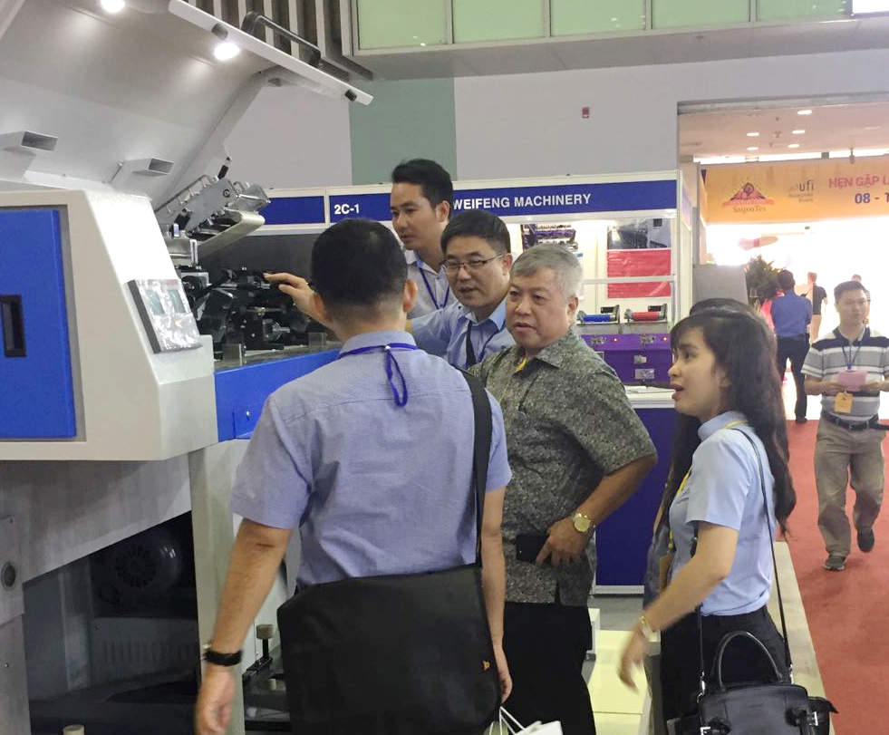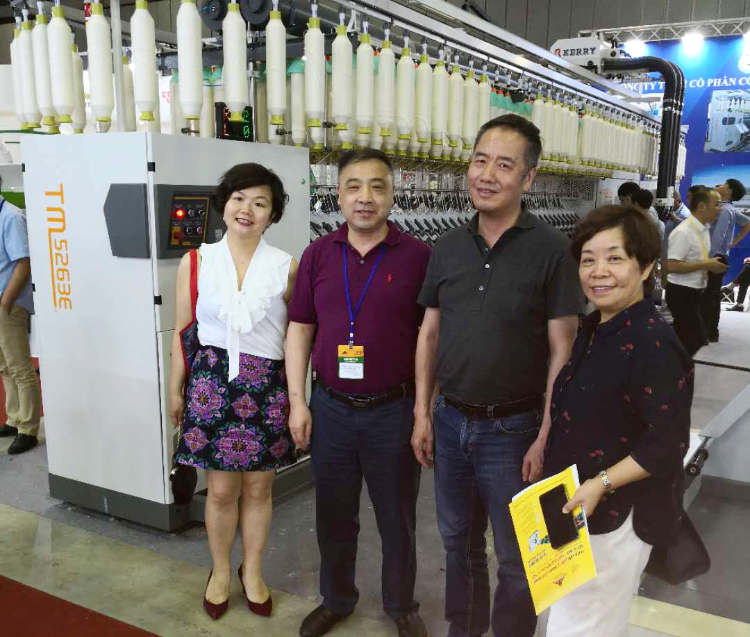 在展會上,位于A2-2D-1湖北天門紡織機械股份有限公司展位人頭攢動、客戶云集,成為整個展會的一大亮點,VINATEX NAM DINH、VICOTEX、 成功紡織、臺灣興業(yè)、臺南紡織、東光公司等當?shù)仄髽I(yè)負責人親赴現(xiàn)場參觀,華孚時尚董事長孫偉挺等嘉賓在天門紡機展位認真觀看設(shè)備演示,詳細了解了產(chǎn)品的新性能和新工藝,對天門紡機并條機與細紗機兩款展機給與高度評價。