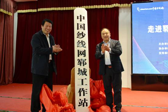 隨后在技術交流大會現場,鄆城縣工信局丁永華局長、中國紗線網王果剛總編為“中國紗線網鄆城工作站”隆重揭牌。