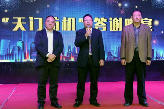 在技術交流大會后,由天門紡機支持的“天門紡機”答謝晚宴在鄆城縣誠信大酒店百合廳進行。在晚宴現場,鄆城縣工信局黨組成員何云峰、中國紗線網王果剛總編及天門紡機肖少華副總經理作晚宴致辭。