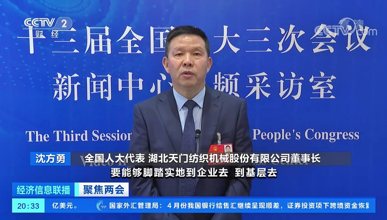 全國(guó)人大代表、湖北中小企業(yè)協(xié)會(huì)會(huì)長(zhǎng)、湖北天門紡織機(jī)械股份有限公司董事長(zhǎng)沈方勇在參加第十三屆全國(guó)人大三次會(huì)議期間,分別就“關(guān)于促進(jìn)棉花及紡織產(chǎn)業(yè)健康發(fā)展的再次建議”、“ 關(guān)于出臺(tái)強(qiáng)有力措施對(duì)沖疫情影響支持湖北中小企業(yè)發(fā)展的建議”、“ 關(guān)于珍惜寶貴財(cái)政金融資源在紓困惠企工作中精準(zhǔn)施策有的放矢的建議”做專題諫言。