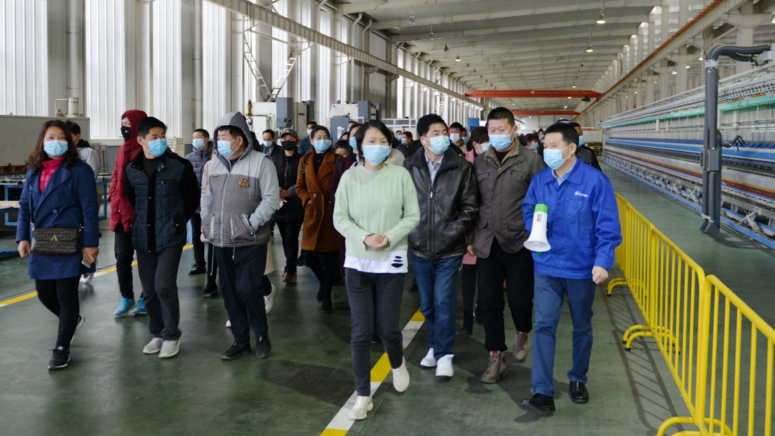 沈方勇董事長帶領(lǐng)求職人員參觀生產(chǎn)現(xiàn)場。疫情期間,天門紡機(jī)兌現(xiàn)不給黨和政府添麻煩、不給疫情防控造壓力、不給社會就業(yè)增負(fù)擔(dān)的承諾,想方設(shè)法招賢納士擴(kuò)大就業(yè)。