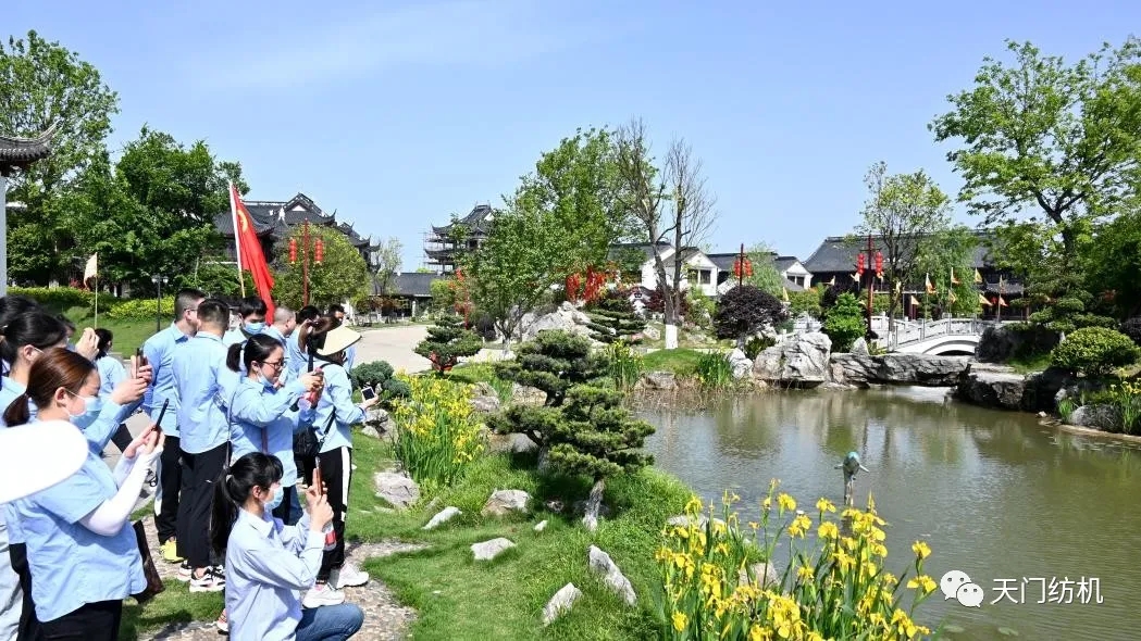 接著,青年團(tuán)員乘車來到天門市海龍島游園。這是一座位于江漢平原的田園鄉(xiāng)村游園,映入眼簾的是別具一格的蘇州古典園林,水亭樓閣鱗次櫛比,湖光山色相互襯托,好一幅迷人的畫卷。在這里,青年團(tuán)員舉行了詩歌朗誦比賽,借此抒發(fā)愛國(guó)情懷。參賽者一個(gè)個(gè)精神抖擻、慷慨激昂,臺(tái)下的觀眾聽得熱血沸騰、群情激昂。
