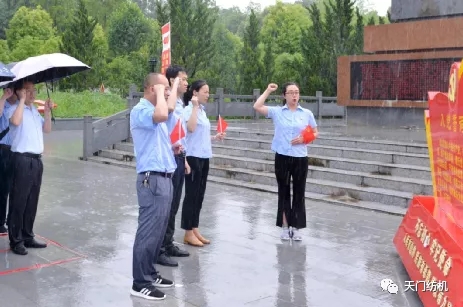 上午11點(diǎn),風(fēng)雨交加,全體黨員頂風(fēng)冒雨,整裝列隊(duì),向湘鄂西蘇區(qū)瞿家灣革命烈士紀(jì)念碑鞠躬默哀。新老黨員齊舉右手,面向黨旗莊嚴(yán)宣誓:“我志愿加入中國(guó)共產(chǎn)黨……”錚錚誓言彰顯了永恒初心。