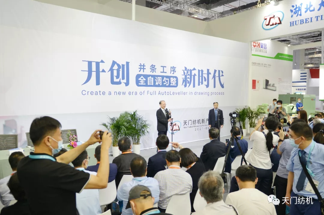 2021年6月12日,天門紡機在上海中國國際紡織機械展覽會暨ITMA亞洲展覽會上,舉行“開創(chuàng)并條工序全自調(diào)勻整新時代”新品發(fā)布會