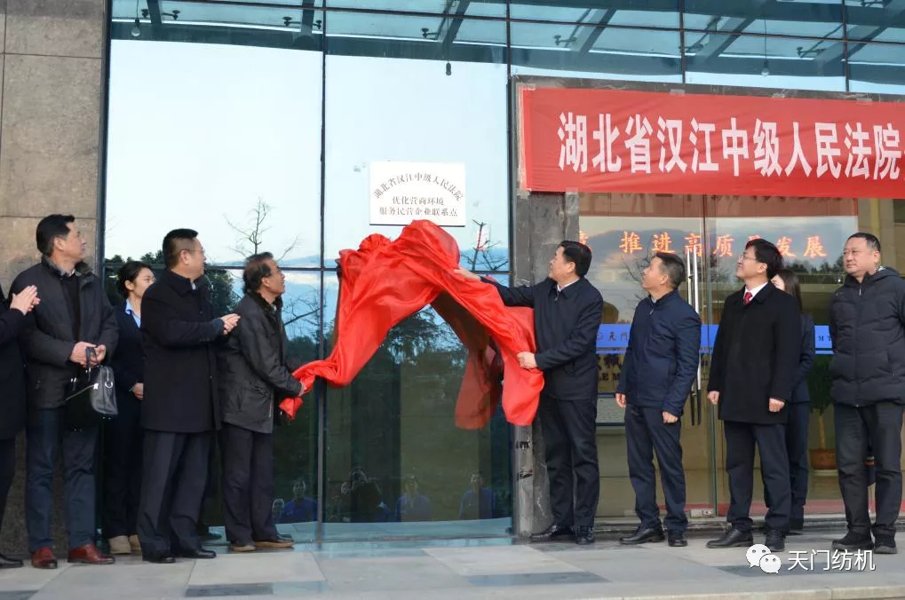 12月29日,“湖北省漢江中級人民法院優(yōu)化營商環(huán)境服務民營企業(yè)聯(lián)系點”掛牌儀式在天門紡機舉行。湖北省高級人民法院二級高級法官肖志堅,漢江中級人民法院院長徐少林,天門市人大常委會黨組書記、副主任董青平,天門市人民法院院長程超平等領導共同為聯(lián)系點揭牌。全國人大代表、天門紡機董事長沈方勇受牌。