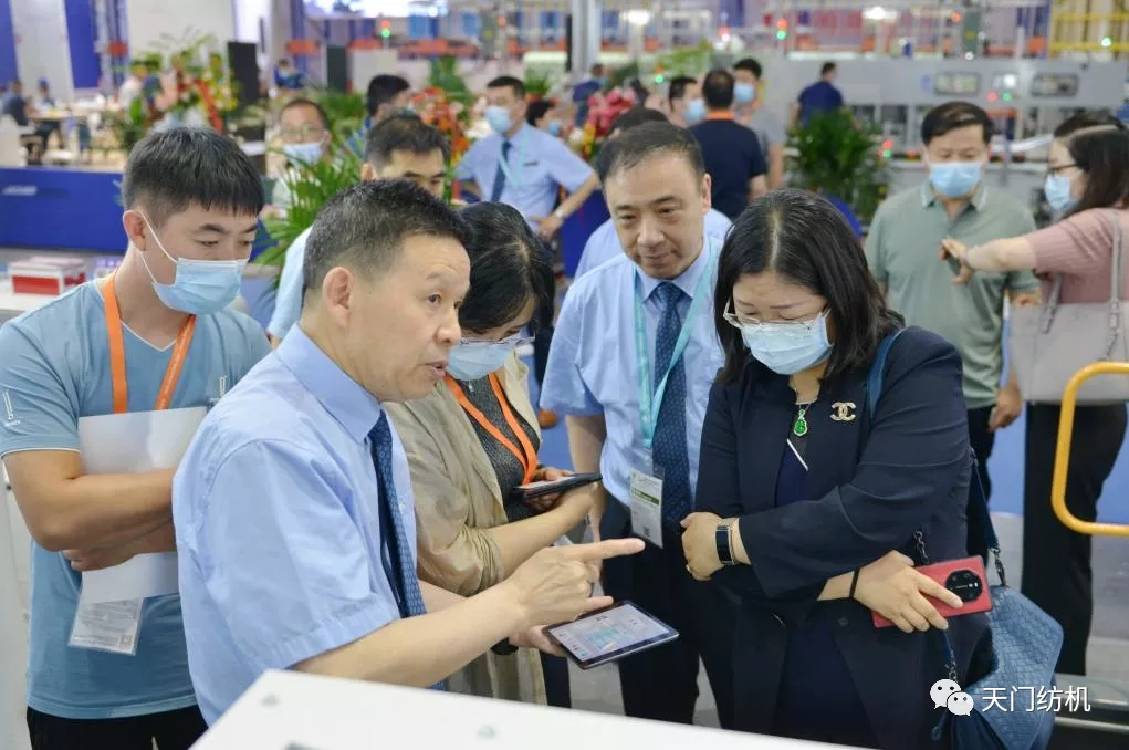 2021年6月12日,在上海國際紡機(jī)展上天門紡機(jī)舉行“開創(chuàng)并條工序全自調(diào)勻整新時(shí)代”新品發(fā)布會(huì),中紡聯(lián)黨委書記高勇使用手持終端為新產(chǎn)品開機(jī)