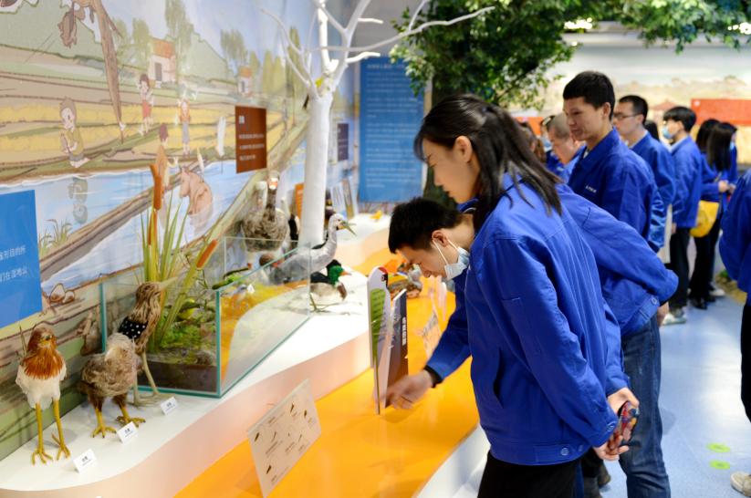 在公園管理員的導(dǎo)引下,我們拾級而上,參觀了科普館。這座科普館是以張家湖歷史、水文、生態(tài)為脈絡(luò),傾心打造的集生動、趣味于一體的現(xiàn)代視聽平臺,還原了農(nóng)耕時(shí)代人類休養(yǎng)生息的原貌和花鳥魚蟲百態(tài)。走在曲曲折折的參觀回廊上,感覺耳朵不夠使,眼睛也不夠用,太多的信息總是撲面而來。同事們都在感嘆:真是不虛此行,既休閑、愉悅了身心,又學(xué)到了知識,收獲滿滿。