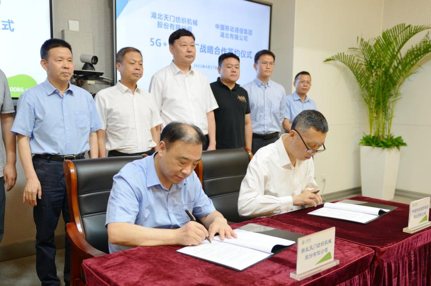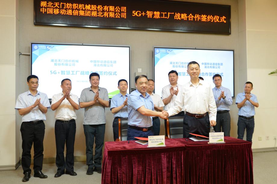 為“數(shù)轉(zhuǎn)智改”儲能 為攜手共建奠基 --天門紡機(jī)、湖北移動舉行“5G+智慧工廠”戰(zhàn)略合作簽約式