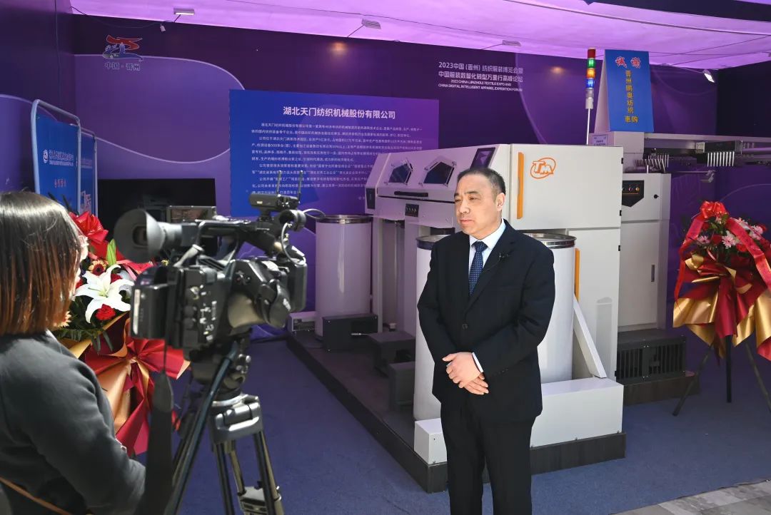 天門紡機總經(jīng)理焦倫進(jìn)接受新聞媒體采訪