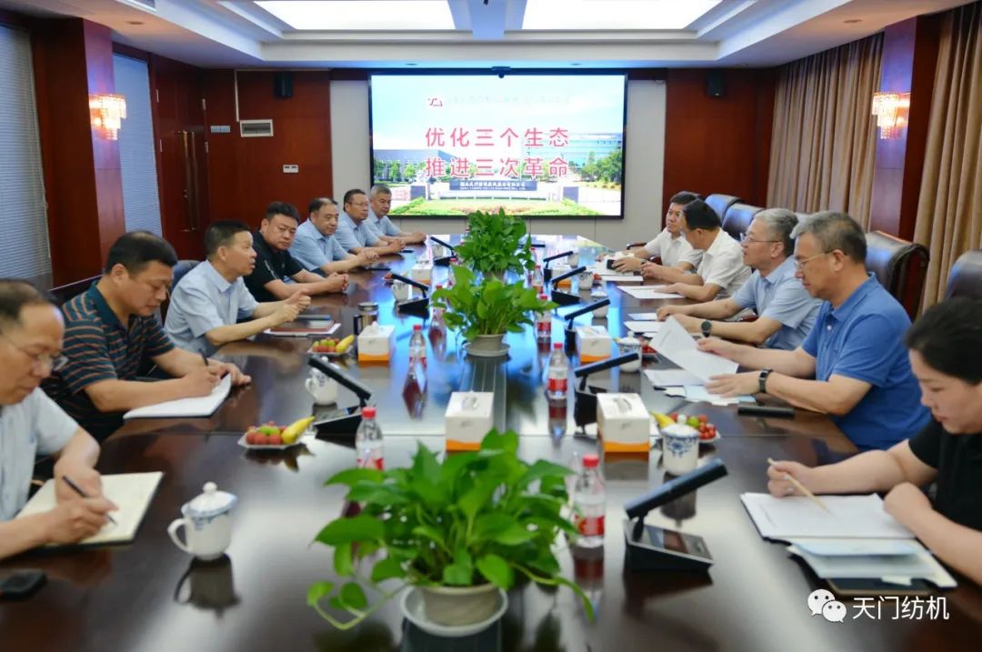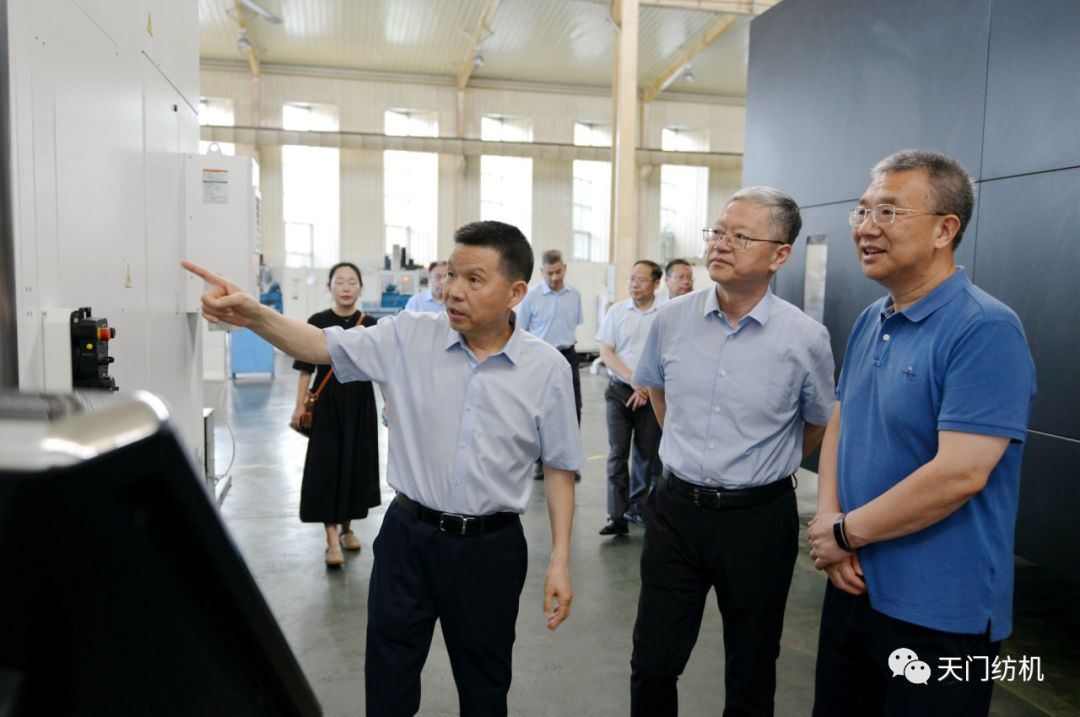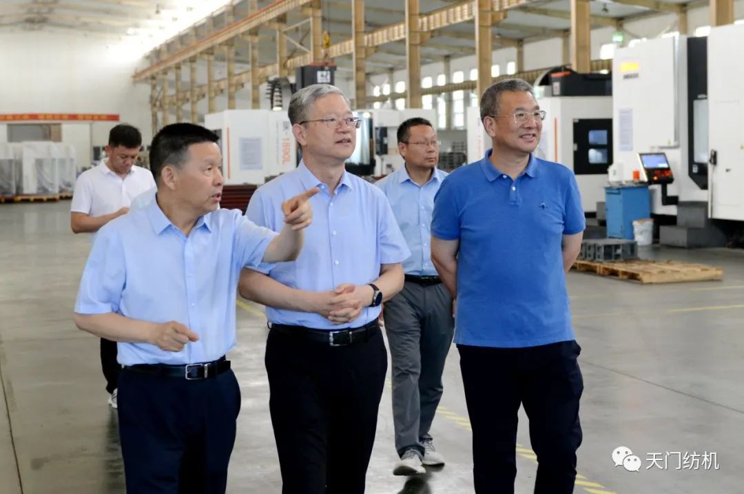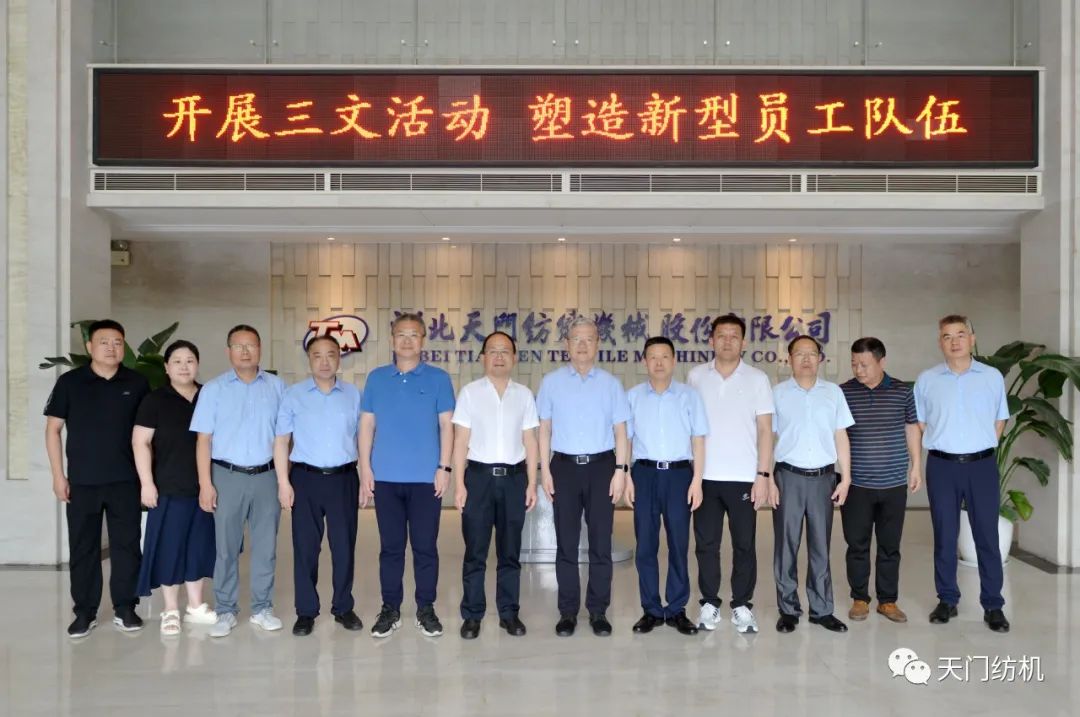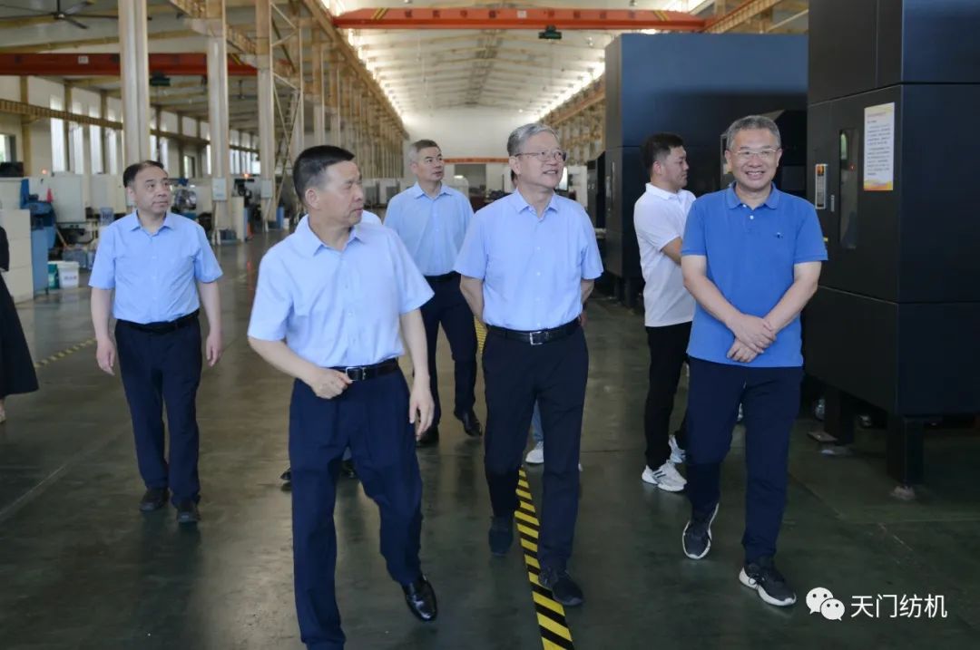 2023年6月27日下午,中國紡織工業(yè)聯(lián)合會(huì)秘書長夏令敏,中國紡織工業(yè)聯(lián)合會(huì)流通分會(huì)副會(huì)長徐建華、秘書長王水元蒞臨天門紡機(jī)調(diào)研,湖北省經(jīng)信廳副廳長周開斌、消費(fèi)品工業(yè)處副處長鄧龍陪同調(diào)研。