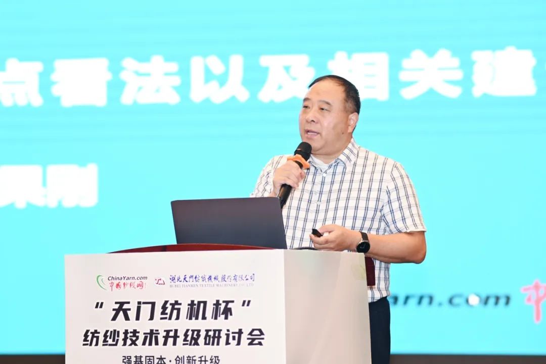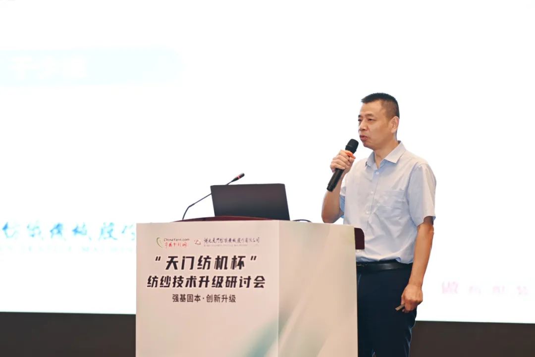 天門紡機總經(jīng)理焦倫進向蒞臨會議的領(lǐng)導、嘉賓及長期關(guān)心支持天門紡機發(fā)展的各界同仁朋友表達了誠摯的謝意,他表示,天門紡機“生產(chǎn)制造柔性化、倉儲物流自動化、信息管理現(xiàn)代化”的5G+智慧工廠項目正在不斷向前推進,我們將通過自身的數(shù)字化轉(zhuǎn)型與智能化改造,為紡織企業(yè)數(shù)字化轉(zhuǎn)型和智能化改造持續(xù)提供裝備基礎(chǔ)。并作了題為《并條機的創(chuàng)新與應(yīng)用助力紡企高質(zhì)量發(fā)展》的專題報告。他交流了天門紡機堅定不移走“專精特新”之路的工作經(jīng)驗,分享了勻整控制、在線監(jiān)控、5G+物聯(lián)網(wǎng)、自動熱交換降溫系統(tǒng)等技術(shù)創(chuàng)新成果。