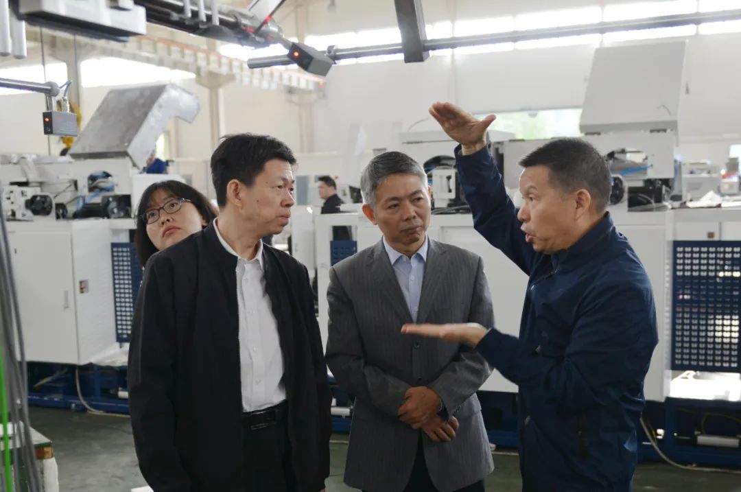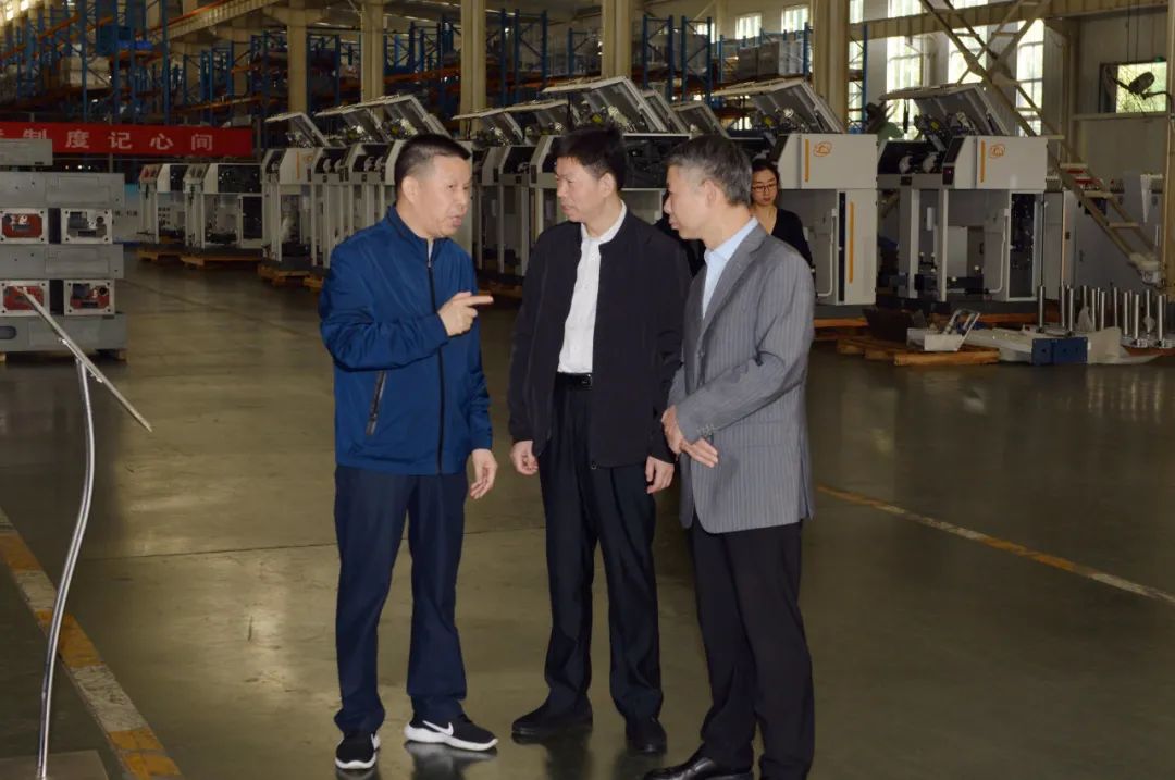 在車間現(xiàn)場,沈方勇董事長向單院長一行介紹了天門紡機(jī)目前的生產(chǎn)經(jīng)營狀況、智慧工廠項(xiàng)目建設(shè)進(jìn)展以及近年來科技開發(fā)取得的成績;詳細(xì)介紹了正在調(diào)試并即將赴上海參展的多臺全新樣機(jī)的情況。