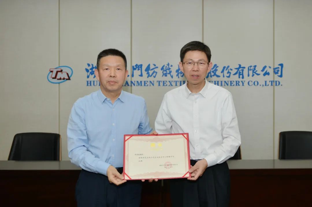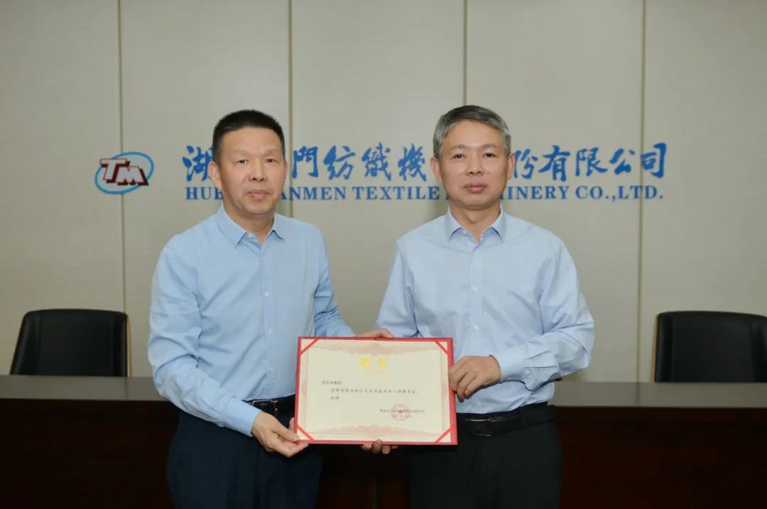 座談會后,沈董事長代表天門紡機(jī)向單教授等3位老師頒發(fā)了特聘專家證書。