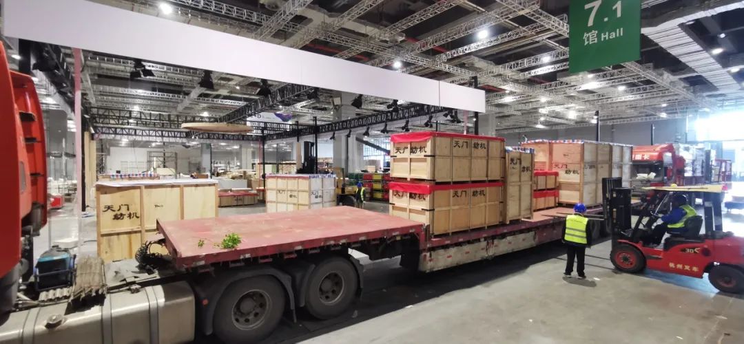 11月14日,代表T2、T3系列并條機最高水平的4款樣機順利運抵上海國際會展中心,開始布展。