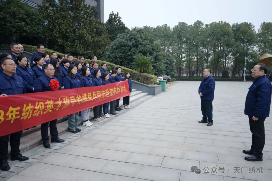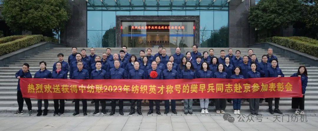 2024年1月15日上午,天門紡機(jī)部室員工齊聚科技樓大廳,歡送公司品控總監(jiān)、高級(jí)檢驗(yàn)師樊早兵同志赴京參加“2023年中國(guó)紡織人才大會(huì)”。公司總經(jīng)理焦倫進(jìn)在歡送活動(dòng)中即席講話,他說(shuō),樊早兵同志被授予“2023年度新時(shí)代紡織英才”,是中紡聯(lián)對(duì)他取得的顯著成績(jī)及奉獻(xiàn)精神的充分肯定,實(shí)至名歸。他得到如此殊榮是天門紡機(jī)的驕傲,全體員工要以他為榜樣,努力工作,奮發(fā)有為,為公司高質(zhì)量發(fā)展貢獻(xiàn)應(yīng)有的力量。送行的員工敲鑼打鼓,載歌載舞,把現(xiàn)場(chǎng)氣氛推向高潮。