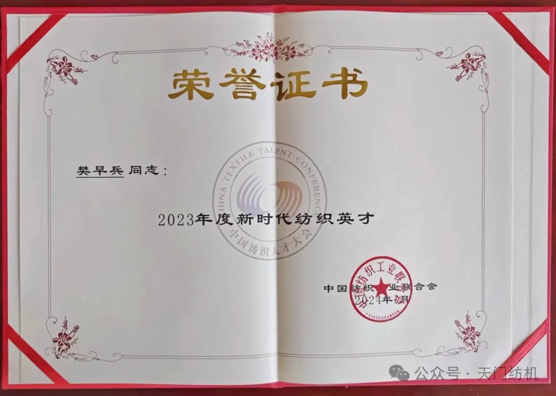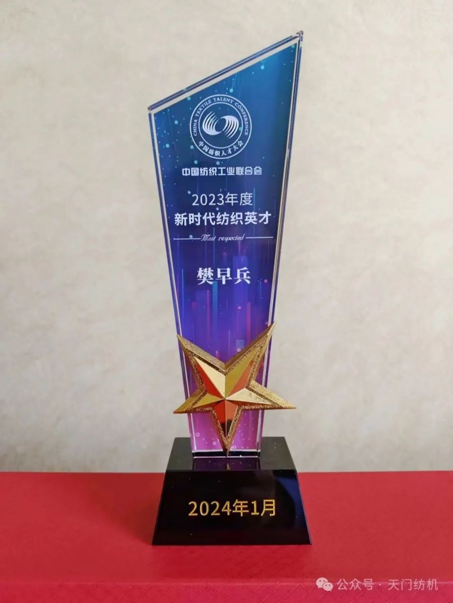 2024年1月16日,樊早兵同志在全國(guó)人大會(huì)議中心參加“2023年中國(guó)紡織人才大會(huì)”,受到中紡聯(lián)表彰,獲得“2023年度新時(shí)代紡織英才”獎(jiǎng)牌和榮譽(yù)證書(shū)。