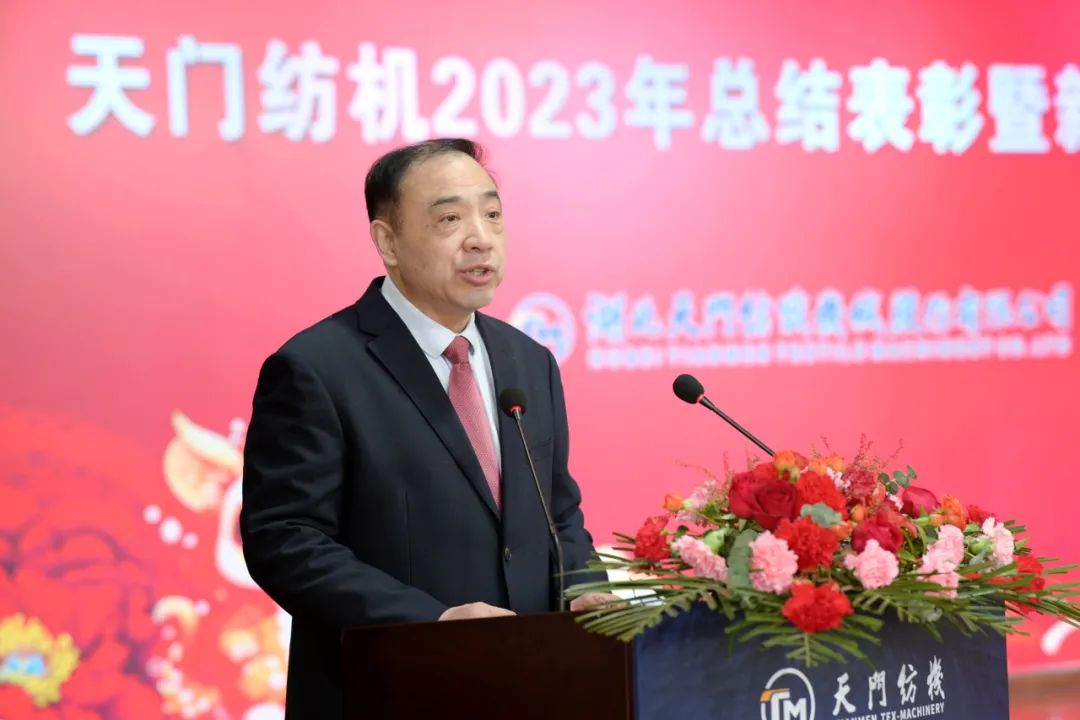 公司總經(jīng)理焦倫進作工作報告。他說,2023年,天門紡機堅持守正創(chuàng)新,扎實推進高質(zhì)量發(fā)展,穩(wěn)中求進,取得佳績。全年銷售額、利潤、入庫稅金保持最好水平,發(fā)展態(tài)勢良好。具體表現(xiàn)為:產(chǎn)品研發(fā)再奏凱歌,新一代產(chǎn)品競相亮相;生產(chǎn)制造再立新功,圓滿完生產(chǎn)任務(wù);市場營銷再顯身手,產(chǎn)品市場占有率穩(wěn)中有升;技術(shù)改造再現(xiàn)驚喜,“智慧工廠”項目和信息化建設(shè)有序?qū)嵤蝗瞬殴ぷ髟匍_新局,梯隊建設(shè)初具雛形;項目申報再創(chuàng)佳績,榮譽和效益實現(xiàn)雙豐收;基礎(chǔ)管理再擔(dān)重任,企業(yè)基石得到夯實;文化建設(shè)再展風(fēng)采,公司凝聚力進一步提升。新的一年,天門紡機將以“五個轉(zhuǎn)型”發(fā)展戰(zhàn)略為引領(lǐng),加快產(chǎn)品改進和產(chǎn)品開發(fā),穩(wěn)步推進技術(shù)改造和生產(chǎn)經(jīng)營模式轉(zhuǎn)型,繼續(xù)拓展國際國內(nèi)市場,凝心聚力,再創(chuàng)佳績。