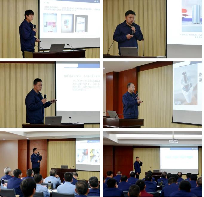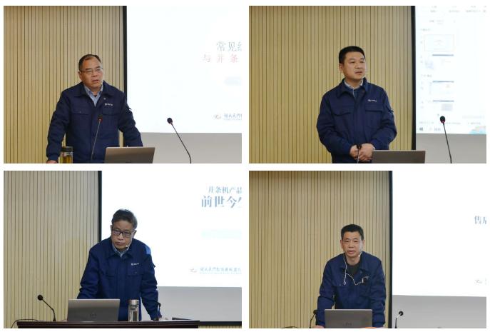 17名售后服務人員作了2023年度工作總結(jié)及技術交流;樊早兵總監(jiān)作專業(yè)知識講座;鄭強總工程師安排布置了T1系列并條機改進工作事項;楊文峰副總經(jīng)理作案例分享;于少波主任作經(jīng)驗分享。