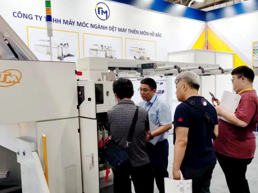 展會(huì)期間,越南PHU BAI、BROCSTEX、TPP TEXTILE、PHONG PHU、VICOTEX等多家紡織企業(yè)蒞臨天門紡機(jī)展位進(jìn)行參觀交流,對(duì)天門并條機(jī)贊許有嘉,評(píng)價(jià)其出條成形好,效率高,且性能穩(wěn)定,節(jié)能降耗。前期的一些用戶也來到現(xiàn)場(chǎng)考察,商討繼續(xù)合作的意向。