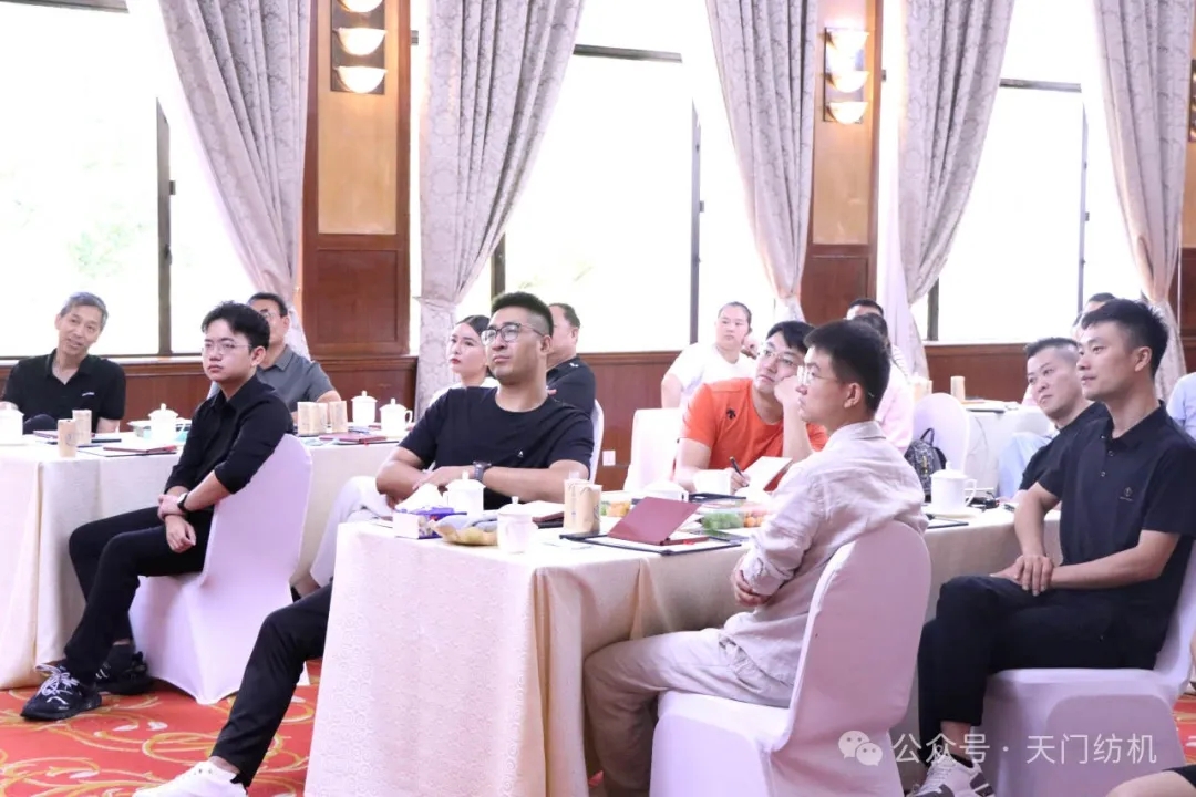 開學座談會上,天門紡機總經(jīng)理焦倫進致辭。他說,我代表天門紡機,向各位青年企業(yè)家表示誠摯的問候!一是感謝中國紗線網(wǎng)。中國紗線網(wǎng)的各位領導,以敏銳的洞察力,將紡織青年企業(yè)家召集在一起,開展以“紡織傳承·創(chuàng)新發(fā)展”為主題的游學活動,非常有意義。二是感謝上一代企業(yè)家。他們那種艱苦奮斗、敢為人先、勇于擔當、義利兼顧的精神值得我們學習。三是感謝今天到會的各位青年企業(yè)家。青年是國家的未來,企業(yè)家是經(jīng)濟的脊梁。作為青年企業(yè)家,你們肩負著時代的重任,承載著社會的期望。在這個充滿機遇與挑戰(zhàn)的新時代,你們以敏銳的洞察力、創(chuàng)新的思維和堅韌的毅力,在紡織行業(yè)中開拓進取,為我國紡織行業(yè)的發(fā)展注入了新的活力和動力,由此我們看到了紡織行業(yè)發(fā)展的希望和未來。