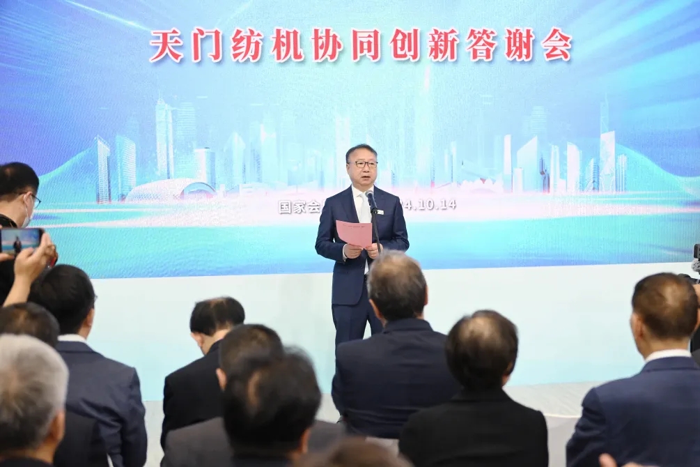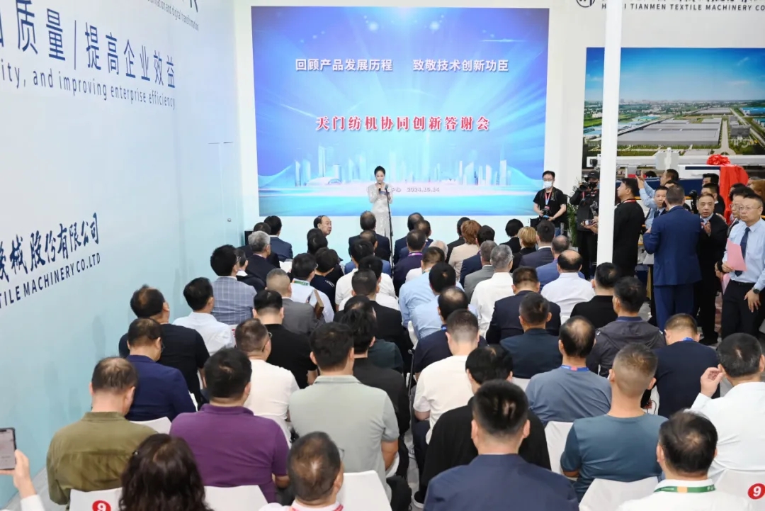 2024年10月14日上午,金秋上海,繁華與靜謐交織,美輪美奐。籍2024中國(guó)國(guó)際紡織機(jī)械展覽會(huì)暨ITMA亞洲展覽盛大開(kāi)幕之機(jī),天門(mén)紡機(jī)舉辦了以致敬協(xié)同創(chuàng)新功臣為主題的答謝會(huì)。