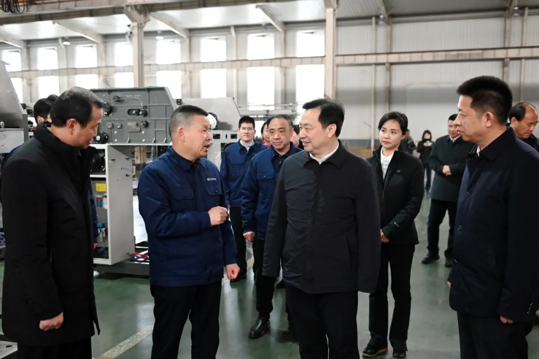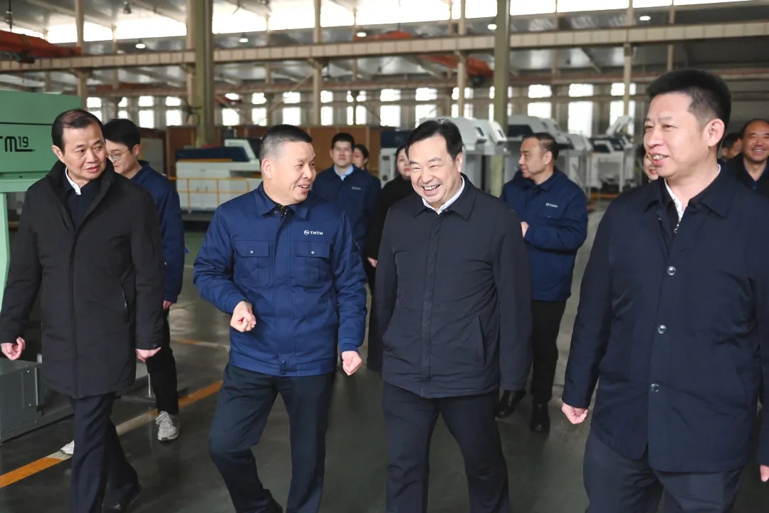 2025年3月4日上午,湖北省經(jīng)信廳黨組書記、廳長(zhǎng)汪元程,總工程師盛章學(xué),經(jīng)濟(jì)運(yùn)行處處長(zhǎng)王雋,裝備工業(yè)處處長(zhǎng)王瓊,原材料工業(yè)處處長(zhǎng)鄧忠明,綜合處二級(jí)主任科員李雷等一行到天門紡機(jī)調(diào)研。天門市委書記、市人大常委會(huì)主任紀(jì)道清,天門市委副書記、市長(zhǎng)肖敏,天門市委常委、副市長(zhǎng)曾令慧,天門市委常委、秘書長(zhǎng)高文博等市領(lǐng)導(dǎo)及天門市經(jīng)信局黨組書記、局長(zhǎng)陳明敏等部門負(fù)責(zé)人全程陪同調(diào)研。
