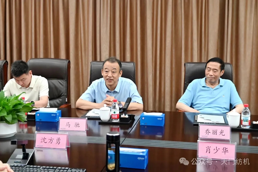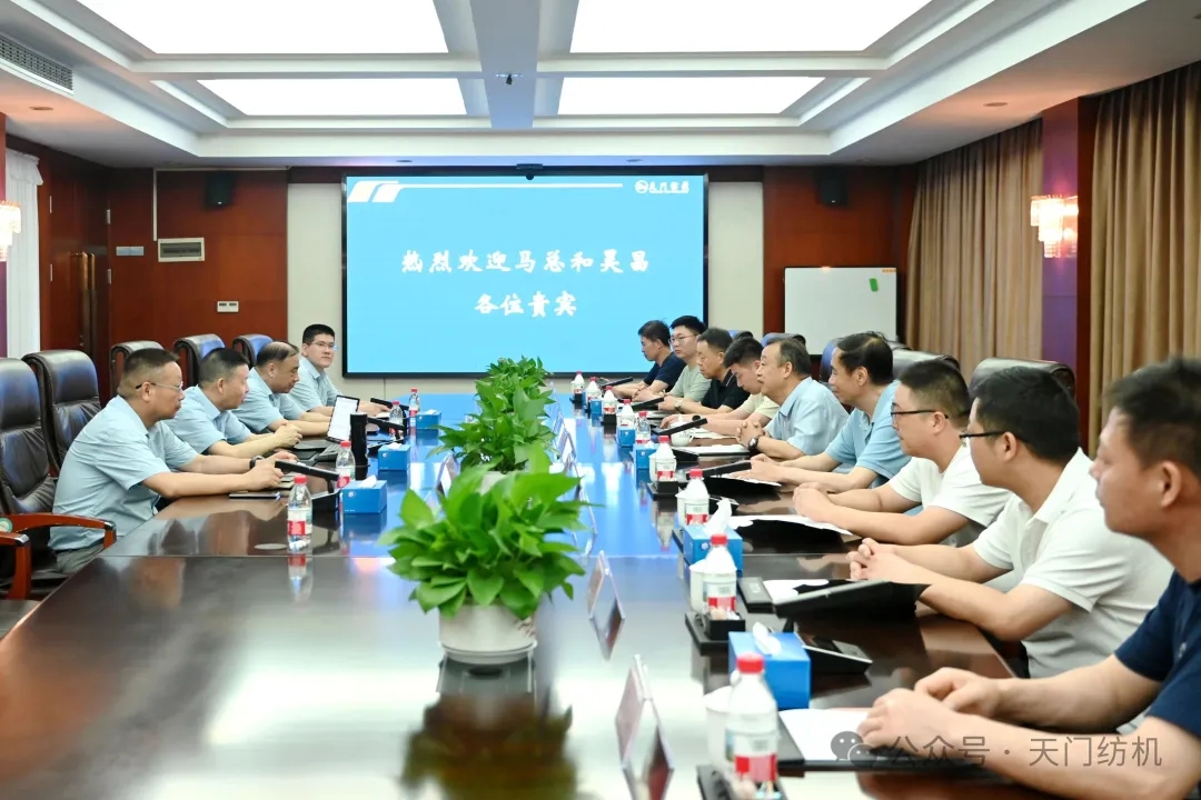 2025年6月30日上午,河南昊昌精梳機械股份有限公司董事長馬馳率高管及中層干部一行9人蒞臨天門紡機,傳經(jīng)送寶。公司董事長沈方勇率隊熱情接待到訪客人,雙方圍繞企業(yè)發(fā)展進(jìn)行了深入交流。